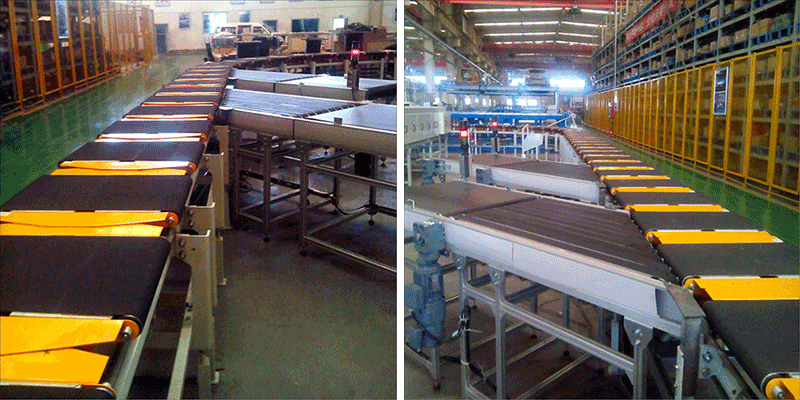交叉帶分揀機(jī)的分揀動作由“小車”完成,當(dāng)“小車”移動到所規(guī)定的分揀位置時(shí),轉(zhuǎn)動皮帶,完成把商品分揀送出的任務(wù)。因?yàn)橹本€電機(jī)主驅(qū)動與“小車”上的帶式輸送機(jī)呈交叉狀,故稱交叉帶分揀機(jī)。因?yàn)椴皇芪锲分亓?、尺寸以及摩擦系?shù)的影響,提高了處理物品的范圍、擴(kuò)大上包通道、加快卸包速度、縮短入格距離、靈活設(shè)計(jì)格口寬度、實(shí)現(xiàn)準(zhǔn)確、平穩(wěn)作業(yè)處理等特點(diǎn)。